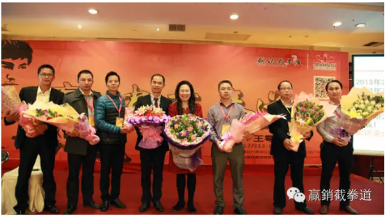 广州赢销家俱乐部的会长吴明宏带领赢销家俱乐部的会员们集体上台献花