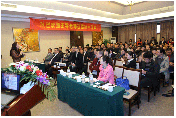 24日上午王雩老师游览国家AAAA级名胜旅游景区——瘦西湖。下午三点,扬州市中小民营企业促进会的百家会员单位负责人在扬州瘦西湖温泉度假村齐聚一堂,共同聆听王雩老师的精彩分享。与以往不同的是,王雩老师此次分享上升到一个新的层面,她不仅仅对销售进行了一个全面的诠释,而且对目前中国的经济形势进行了分析。通过王雩老师仔细的讲解和分析,全场企业家们豁然开朗,如获新生!王雩老师不仅传授销售实战经验,精彩分享后,还为企业家答疑解惑。
