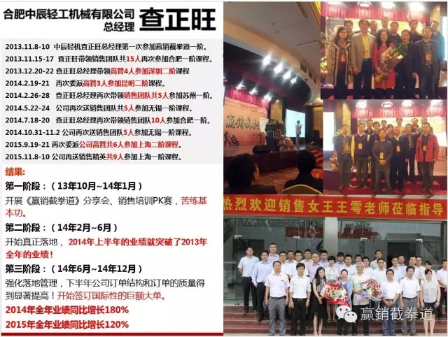 合肥中辰轻机公司自学习《赢销截拳道》以来所取得的成绩